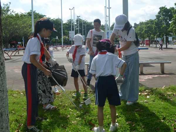 活動(dòng)現(xiàn)場(chǎng),親子義工們手持笤帚、垃圾袋等工具,圍繞白石涌體育館段兩岸的人行道、綠化帶以及場(chǎng)館周邊進(jìn)行清潔。他們認(rèn)真清理塑料瓶、包裝袋、煙頭、紙片、易拉罐等垃圾,擺放好亂停的公共自行車。雖烈日當(dāng)頭,但他們勁頭不減,忙碌的身影不時(shí)引來行人駐足點(diǎn)贊。學(xué)生志愿者一邊清理垃圾,一邊向過往的行人宣傳環(huán)保觀念,以實(shí)際行動(dòng)爭(zhēng)當(dāng)“河小青”!在他們的感召下,不少行人自覺加入到志愿行動(dòng)中。