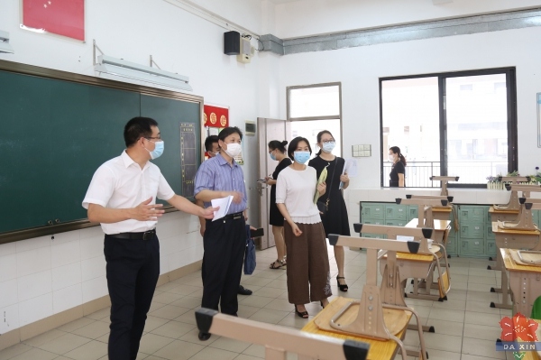 大信學校全體行政和級組長分組陪同專班小組成員到各個場地進行考察,并詳細匯報了學校學生返校疫情防控工作的具體措施和后勤保障工作,專班小組開展了認真細致地檢查驗收工作,并對一些管理細節(jié)進行了現(xiàn)場指導。
