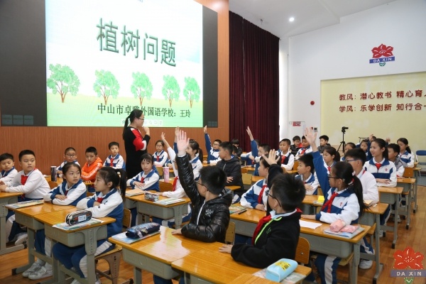 第二節(jié)卓雅外國(guó)語(yǔ)學(xué)校的王玲老師執(zhí)教同樣的《植樹問題》內(nèi)容,萬(wàn)老師的課堂教學(xué)風(fēng)格簡(jiǎn)潔高效,學(xué)生參與積極,老師善于傾聽學(xué)生的回答,在師生、生生之間的相互“碰撞交流”中達(dá)成教學(xué)目標(biāo),教學(xué)效果非常好。