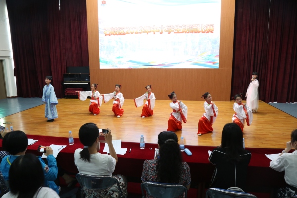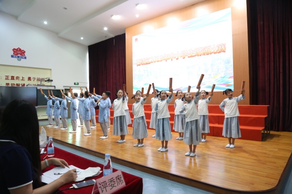 本次比賽分甲、乙兩個(gè)組別,按照大賽規(guī)定,每個(gè)節(jié)目的演出時(shí)間不超過(guò)5分鐘,其中甲組參加人數(shù)2-8人,乙組參加人數(shù)為10-20人。 區(qū)屬的中小學(xué)校踴躍報(bào)名,共有十七所學(xué)校,共28支代表隊(duì)參加了此次比賽。