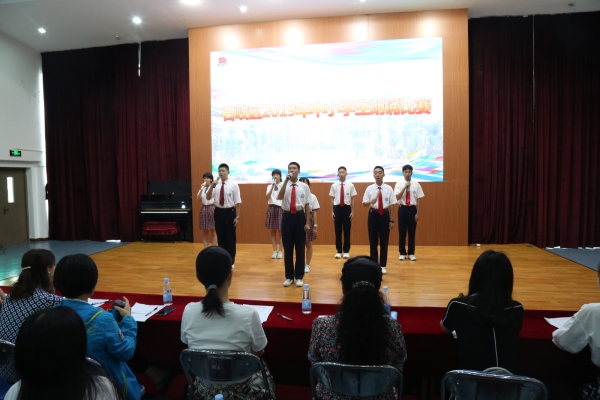 大信學(xué)校也派出了兩支優(yōu)秀的代表隊(duì),一組是由趙連晶老師帶領(lǐng)的6人精英小組隊(duì),另一組是史季老師帶領(lǐng)的五(4)班20名孩子們組成的團(tuán)體隊(duì)。兩位老師從接到任務(wù)開(kāi)始,在教導(dǎo)處邱主任的帶領(lǐng)下,積極撰稿,并利用一切零散時(shí)間組織學(xué)生排練,校園間總能聽(tīng)到那振奮人心的朗朗誦讀聲……