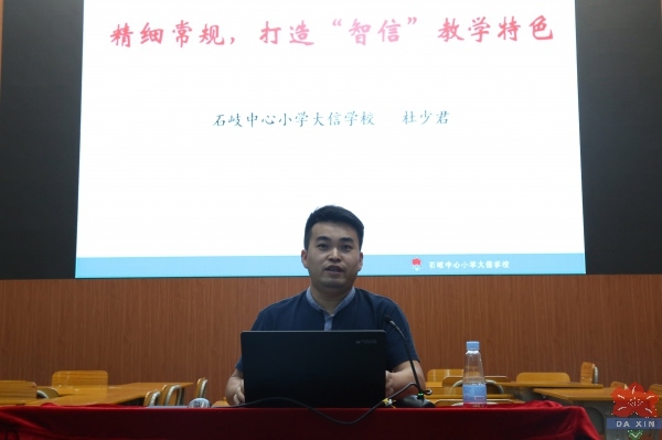 當天下午,梁鐘添副校長與研修班的校長們分享大信學校德育工作經(jīng)驗《追夢,我們在路上》,從黨建德育高度,人才集群化,主題教育活動,家校共育機制,落實安全教育五大方面,彰顯了大信學校德育和教學工作有機結(jié)合,為學生發(fā)展提供了有力的保證。分管教學的杜少君副校長分享《精細常規(guī),打造“智信”教學特色》,教學工作理念新穎,體系完備,大到方向性把握,小到操作的點點滴滴,體現(xiàn)了教科研在學校工作中的龍頭作用,骨干教師的“一師兩課”、科組建設(shè)的特色和精品課程資源庫的完備體系,為研修班的校長們提供了借鑒,得到了與會校長們的高度評價。