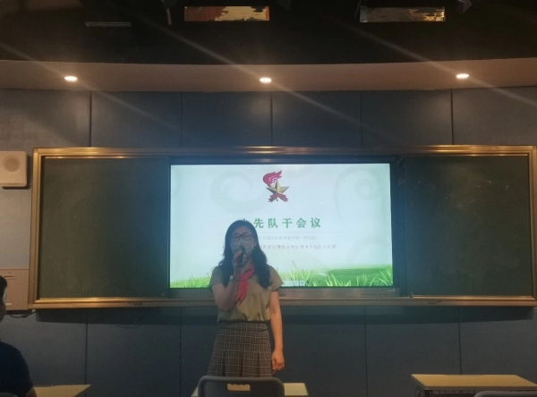 會議開始,與會師生齊唱《中國少年先鋒隊隊歌》,少先隊員行隊禮。大隊長馮紫雯對上學(xué)期少先隊干部工作做總結(jié)發(fā)言。