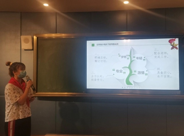 大隊輔導(dǎo)員羅嘉立老師希望隊干們能保持積極向上的心態(tài),從小學(xué)先鋒,長大做先鋒。