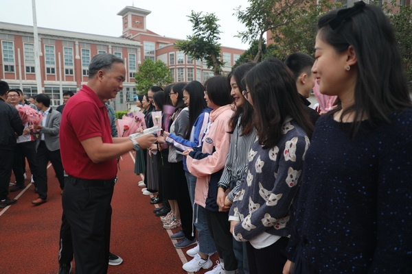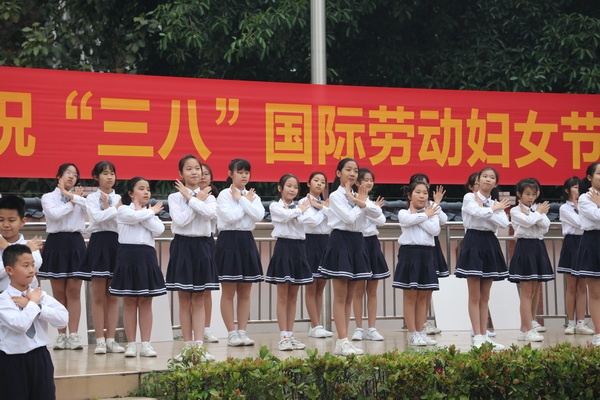 節(jié)日當(dāng)天恰逢周一,升旗儀式上,學(xué)校校長(zhǎng)陳澤湖帶領(lǐng)全體男教師為女教師們送上了鮮艷的鮮花和真摯的節(jié)日祝福。隨后,五(5)中隊(duì)獻(xiàn)上了精彩的歌舞節(jié)目《有你就幸福》,悠揚(yáng)的歌聲在校園中飄揚(yáng),同學(xué)們的祝福暖人心田,女教師臉上洋溢著幸福的笑容。