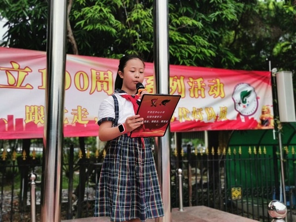 回望百年,初心不忘。為慶祝中國(guó)共產(chǎn)黨成立100周年,弘揚(yáng)偉大的愛國(guó)主義精神,培養(yǎng)學(xué)生對(duì)黨和國(guó)家的熱愛,進(jìn)一步堅(jiān)定少年兒童跟黨走的信念,引導(dǎo)學(xué)生樹立遠(yuǎn)大目標(biāo),奮發(fā)有為,把愛黨、愛國(guó)的激情轉(zhuǎn)化為學(xué)習(xí)的動(dòng)力,開發(fā)區(qū)中心小學(xué)于6月21日上午在國(guó)旗下舉行了愛國(guó)主義教育活動(dòng),活動(dòng)由四(3)中隊(duì)的孫佳琦同學(xué)主持。