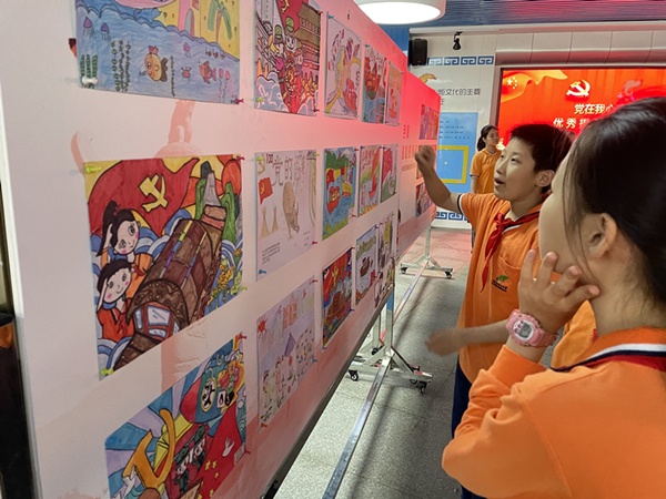活動(dòng)前,學(xué)校根據(jù)學(xué)生不同年段的特點(diǎn),制定了不同的繪畫主題:一、二年級(jí)以《紅船》《開荒?!窞橹黝};三年級(jí)以《狼牙山五壯士》為主題;四年級(jí)以抗美援朝為主題;五年級(jí)以《長征》為主題;六年級(jí)以《紅軍過雪山》為主題。老師們還鼓勵(lì)學(xué)生們通過水粉畫、彩筆繪畫、蠟筆繪畫等多樣的藝術(shù)形式,發(fā)揮自己想象力、創(chuàng)造力,用心繪制作品。經(jīng)過層層選拔,一幅幅優(yōu)秀的繪畫作品被有序地展覽在開發(fā)區(qū)中心小學(xué)一樓大堂處,引來無數(shù)學(xué)生駐足觀看。