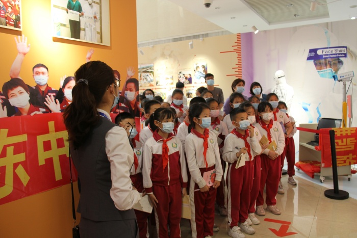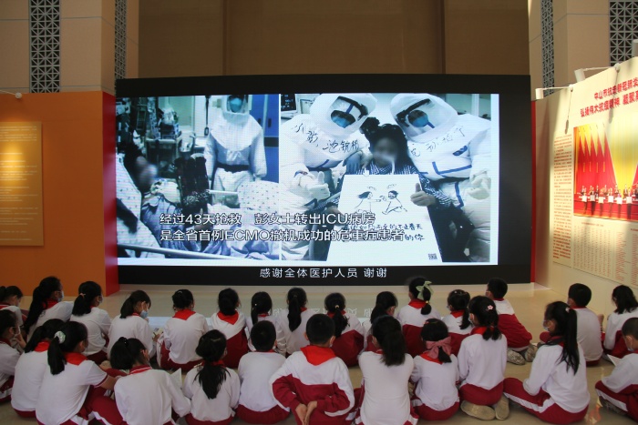 中山抗疫展分為“中山速度”“中山力量”“中山溫度”“中山情懷”“中山擔(dān)當(dāng)”五個(gè)篇章,融合大量圖文、音視頻、實(shí)物、抗疫主題文藝作品等資料,運(yùn)用聲光電、VR/AR技術(shù),全面、立體、生動還原了中山抗疫情景,記錄令人蕩氣回腸的中山“抗疫長卷”。通過此次觀展活動,開發(fā)區(qū)第一小學(xué)的40余名學(xué)生代表透過展覽,一起感同身受那份英雄的事跡,學(xué)生認(rèn)真參觀學(xué)習(xí),被抗疫英雄的事跡深深感動,講解員在采訪個(gè)別同學(xué)時(shí),有的孩子說:“我們要學(xué)習(xí)醫(yī)生和護(hù)士們的獻(xiàn)身精神”,也有的說:“我們要好好學(xué)習(xí),長大后要保家衛(wèi)國”。活動最后學(xué)生通過體驗(yàn)VR影像技術(shù),從病人和醫(yī)生兩個(gè)視角真切感受隔離病房實(shí)景,向奮斗的疫情前的醫(yī)護(hù)工作者點(diǎn)贊,學(xué)以明志、行以大愛,相信開發(fā)區(qū)第一小學(xué)的學(xué)子在未來的人生路上永不退縮,知難而上,做時(shí)代好少年。