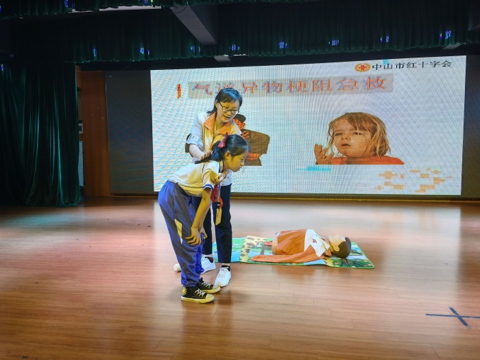 為了進(jìn)一步普及急救知識,增強學(xué)生的安全意識和提高應(yīng)急救護(hù)技能,4月12日下午,學(xué)校特邀中山市紅十字會鄭旭敏老師為五年級全體同學(xué)進(jìn)行了應(yīng)急救護(hù)知識講座。鄭老師結(jié)合日常常見突發(fā)情況,通過分析救援案例,說明施救過程中的技術(shù)要點、現(xiàn)場動作示范演示等,專心致志地為大家講授了氣道異物梗阻、溺水救護(hù)、燙燒傷、鼻出血、踩踏傷與心肺復(fù)蘇等相關(guān)知識和急救方法。