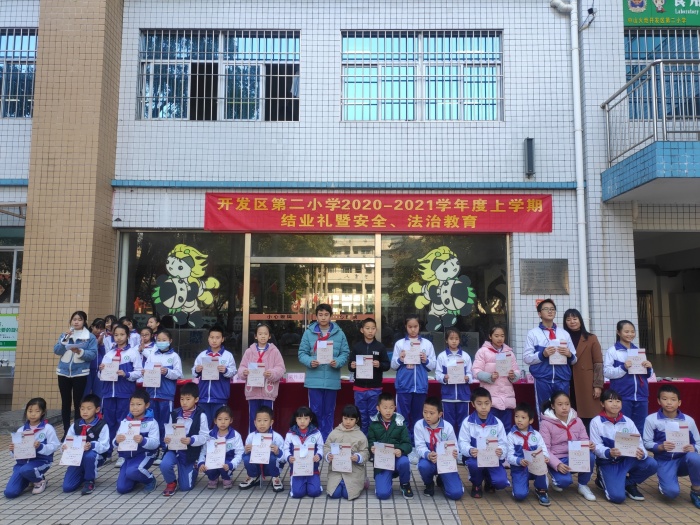 學(xué)海耕耘綻芬芳,情溢校園伴成長。不知不覺間收獲滿滿、內(nèi)容豐富的一學(xué)期迎來了尾聲,為了讓同學(xué)們度過一個安全、有意義的寒假,2021年1月15日上午,開發(fā)區(qū)第二小學(xué)在學(xué)校小操場舉辦了散學(xué)禮暨法治安全教育活動?;顒佑牲S頌雅老師主持,全校師生共同參與。