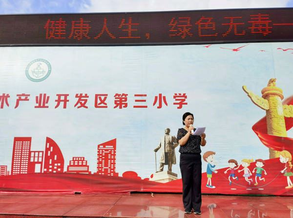 為全面加強(qiáng)青少年毒品預(yù)防教育工作,激發(fā)全體師生開(kāi)展毒品預(yù)防教育熱情。2021年6月25日早上,在國(guó)際禁毒日來(lái)臨之際,開(kāi)發(fā)區(qū)第三小學(xué)開(kāi)展“健康人生,綠色無(wú)毒”禁毒宣傳教育主題活動(dòng)。