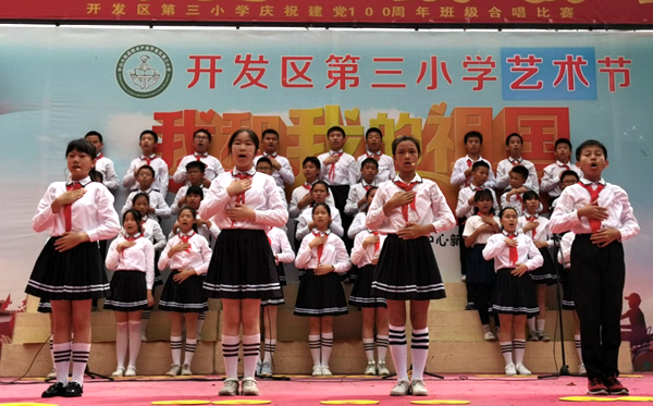 為慶祝中國共產黨建黨100周年,進一步加強小學生思想道德建設,踐行社會主義核心價值觀,激發(fā)學生愛黨、愛國的熱情,聽黨的話,跟黨走?;鹁骈_發(fā)區(qū)第三小學于5月31日上午,在校園的鳳凰臺舉行了“童心向黨 喜迎百年”合唱比賽。