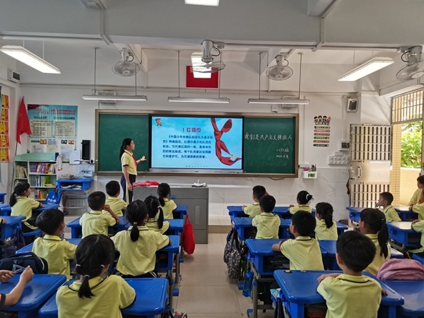 為了進(jìn)一步培養(yǎng)學(xué)生熱愛黨、熱愛祖國、熱愛人民的高尚品質(zhì),激勵(lì)他們爭當(dāng)新時(shí)代好隊(duì)員,2021年5月18日下午,在迎來中國共產(chǎn)黨建黨100周年之際,火炬開發(fā)區(qū)第三小學(xué)大隊(duì)部利用少先隊(duì)活動(dòng)課,由大隊(duì)委員為一年級的同學(xué)開啟了生動(dòng)而嚴(yán)肅的教育活動(dòng),孩子們備受鼓舞愛國愛黨之情更加飽滿,對加入中國少年先鋒隊(duì)充滿期待!