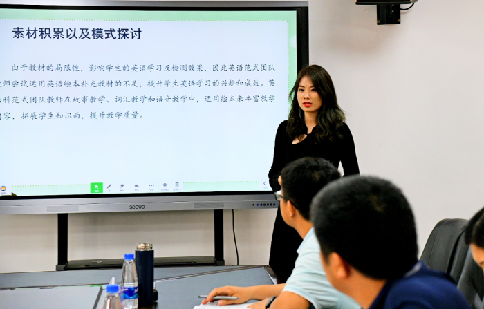 此次交流展示活動由開發(fā)區(qū)五小崔洋副校長主持,首先崔校長向跟崗校長們介紹了學(xué)校范式教師的結(jié)構(gòu),簡要說明了創(chuàng)立“范式課堂”、設(shè)立“范式教師”的初衷。接下來是“范式教師”代表作匯報。李美婷老師向大家分享了她所帶領(lǐng)團隊的范式課堂模式是“與書為伴,樂學(xué)善思”的童趣課堂,此課堂教學(xué)模式立足于讓低年級的孩子培養(yǎng)愛閱讀、愛學(xué)習(xí)、愛思考的好習(xí)慣,落實低年級的字詞句教學(xué),把語文學(xué)習(xí)的基礎(chǔ)打牢固。鄧新芳老師針對高年段研究的“問思”課堂模式,以問題為支架,知識與能力并行,通過課堂提問學(xué)生“是什么”“為什么”“怎么做”,讓學(xué)生更加深入地學(xué)習(xí)課文,發(fā)展思維能力。數(shù)學(xué)科由張萍萍老師向大家分享了“基于solo理論指導(dǎo)下的數(shù)學(xué)課堂模式”,課前通過前測診斷出學(xué)生的思維層次,用“加一”策略,定出學(xué)習(xí)目標(biāo)再通過課堂教學(xué)分層指導(dǎo),提升學(xué)生的思維層次。英語科沈曼琳老師立足于英語繪本故事,在故事教學(xué)、詞匯教學(xué)和語音教學(xué)中,運用繪本來豐富教學(xué)內(nèi)容,拓寬學(xué)生知識面,提升教學(xué)質(zhì)量。