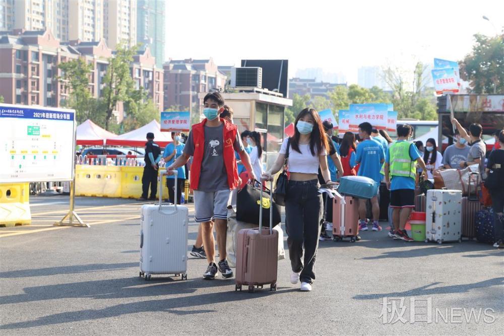 家長送到校門口,新生自行進入校園,家長不能陪同。該校黨委書記向家文在校門口“把關”,他告訴記者:“學生進入大學,要學會自主自立,不能由家長包攬一切,自己完成報到手續(xù),就是進入大學的第一課。學校已安排老師和學生志愿者提供引導、幫忙搬運行李。家長要‘放手’,也可放心?!?/p>