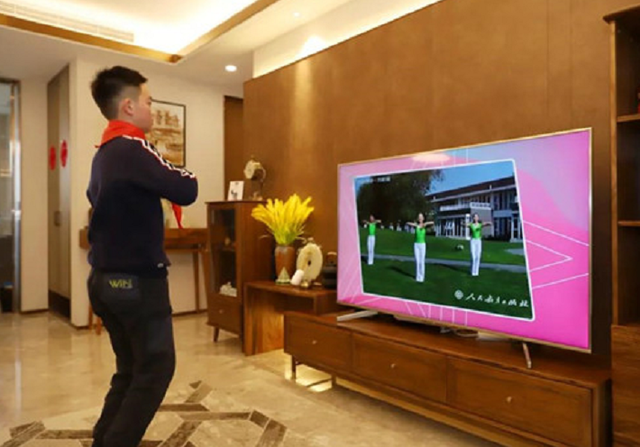 緊接著,就是家長(zhǎng)群里“猛料”不斷,有些同學(xué)正在客廳跟隨著電視學(xué)習(xí)一些健美操,不過(guò)脖子上依然戴著自己的紅領(lǐng)巾,不知道這位同學(xué)是不是沒(méi)有適應(yīng)自己休閑的周末時(shí)光,不過(guò)看上去還是比較認(rèn)真的。