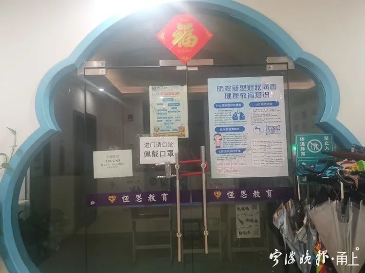 “宏勝教育培訓(xùn)”大門緊閉上了鎖;“引力教育”門口不時地有小朋友來上英語課;“新狀元培優(yōu)”“交大智立方”兩家培訓(xùn)機構(gòu)也都有學(xué)生在里面上課。