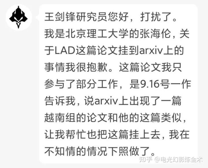 王劍鋒當(dāng)然很不滿意,難道arxiv也能“錯誤提交”?作為提交者,雖然不是第一作者(但是是共同第一作者),也應(yīng)該負有主要責(zé)任。如果一字不差的全文照搬都不算抄襲,那么還有什么算抄襲?