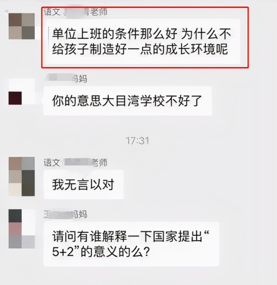 老師的這番話還用了“學(xué)校的意思”當(dāng)借口,自然是得不到家長的認(rèn)同,在被家長反駁后,這位老師又氣急敗壞的,在家長群里說到“家里沒有人了?單親家庭?托管班學(xué)校門口有沒有?”
