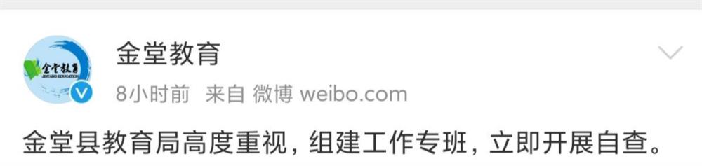 16日凌晨,金堂縣教育局就此事發(fā)布微博稱:金堂縣教育局高度重視,組建工作專班,立即開展自查。16日上午,金龍鎮(zhèn)小學(xué)工作人員告訴極目新聞?dòng)浾?,?duì)于網(wǎng)傳視頻反映的內(nèi)容,他們已經(jīng)成立了專班調(diào)查小組,待處理結(jié)果出來以后,將向社會(huì)公布。