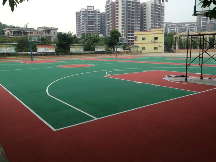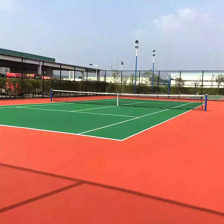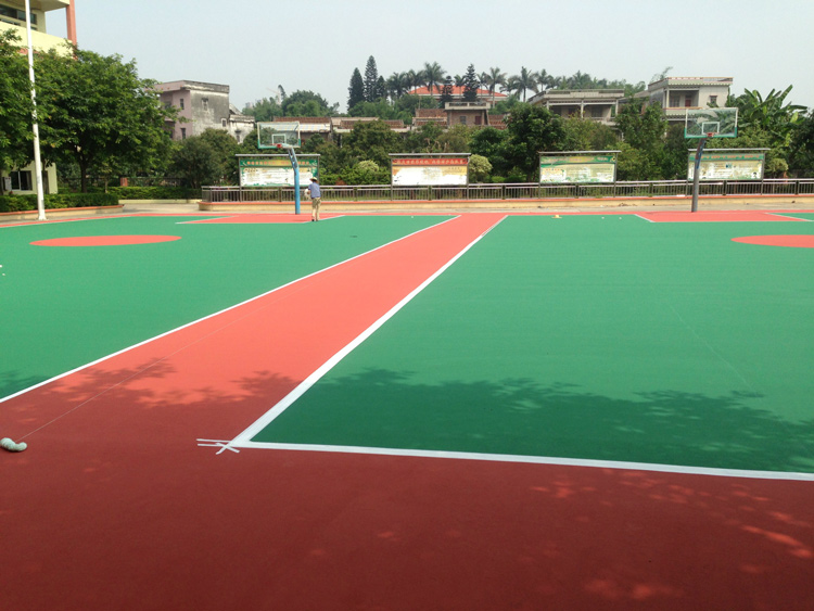 材料簡介:丙烯酸材料是可施工于混凝土基礎(chǔ)層與瀝青基礎(chǔ)層的球場面層材料,分為底漆、中涂、面漆。厚度為1-2mm,根據(jù)添加石英砂的粗細(xì)及量控制厚度。顏色鮮艷,防滑,可使用6-8年。