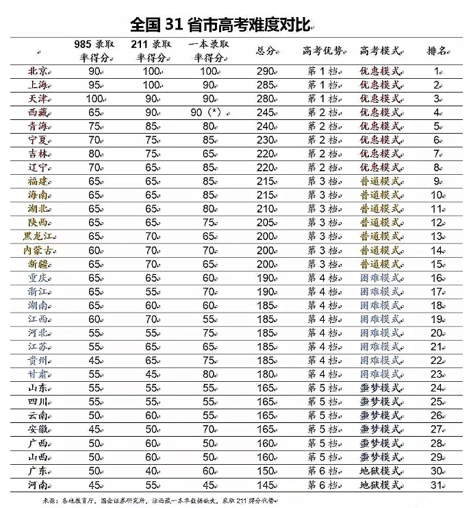 困難模式、噩夢模式和地獄模式的高考省市,孩子們辛苦了