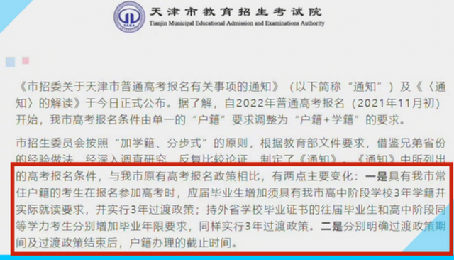 這就意味著,戶籍可以解決,但是學(xué)籍那就需要腳踏實地的讀書,如果想要獲得學(xué)籍,那就必須在天津讀書,這也就不存在高考移民一說了,享受了天津的教育,這才可以參加天津的高考,想要獲得3年的學(xué)籍,說不定從初中就要在天津讀書,這樣一來高考移民也就不存在了。