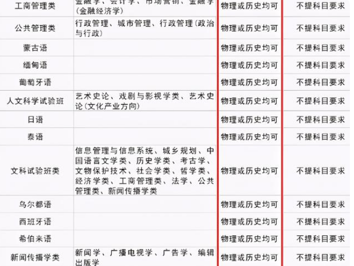 在這種新高考模式下,傳統(tǒng)文科生的日子越來越難,根據(jù)北大在山東省的各專業(yè)選科要求上看,傳統(tǒng)的文科生可選擇的專業(yè)并不多。