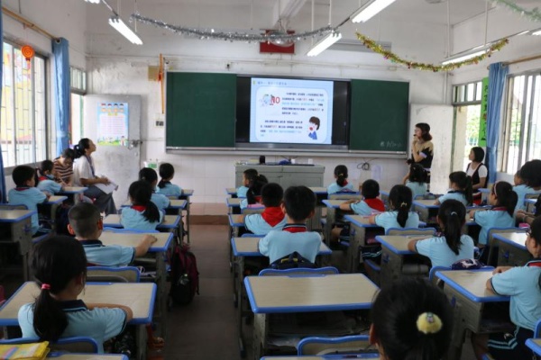 陳澤玲和梁土瑜老師設計的班會課生動、有趣,兩位老師都利用游戲體驗方式讓孩子們了解到自己的情緒變化的多樣和復雜。讓孩子們知道,如果有了壞情緒后,要懂得選擇正確調節(jié)情緒的方法;吳偉玲老師開展的“珍愛生命,守護生命”為主題的班會課,利用生動的事例闡明簡單的道理,深入淺出,別開生面;姚燕老師的班會課以“學會交往”為主題,以小視頻導入,同學們展開熱烈的討論,課堂上輕松活躍,大家各抒己見,發(fā)表不同的看法。曾大妹、許妙旋老師課前準備充分,課型新穎,師生互動效果好,老師們向同學們展示了一節(jié)節(jié)生動而又富有教育意義的班會課,觸動著每一個孩子的心靈。