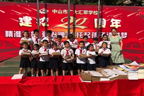 一冊書一份情,一縷書香一片心。伴隨散學(xué)禮,中山市廣大匯翠學(xué)校全體師生響應(yīng)坦洲鎮(zhèn)“精準(zhǔn)扶貧 愛心贈書 托起孩子讀書夢”捐書倡議活動的號召,舉行了愛心捐書活動。大隊(duì)輔導(dǎo)員林玲老師帶領(lǐng)全體學(xué)生參加本次的捐書活動,大家紛紛帶上平時(shí)閑置和自己喜歡的讀物,來到學(xué)校升旗臺進(jìn)行了捐贈。本次捐贈的書籍種類多種多樣,數(shù)量更是達(dá)三千多本,匯聚一股情系廣寧、愛心匯翠的暖流。