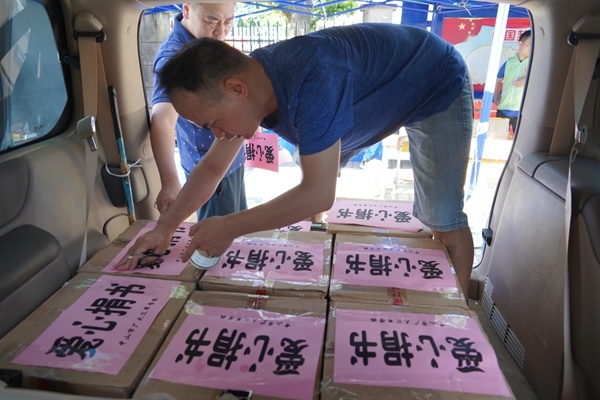 夏天的太陽像個大火爐,把大地烤得發(fā)燙,就連空氣也是熱烘烘的。太陽下的老師一個個汗流浹背的,忙碌地將學(xué)生捐贈的書,有序地一箱箱進(jìn)行打包,希望盡早將書送到廣寧縣孩子手中,因為那沉重的三千多本書籍是廣寧孩子們求知的渴望。