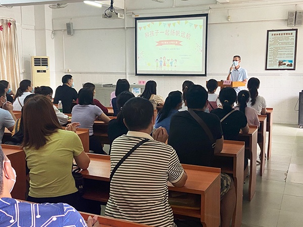 下午3點(diǎn),家長(zhǎng)們準(zhǔn)時(shí)來(lái)到學(xué)校參加培訓(xùn),培訓(xùn)的第一項(xiàng)是由永一小學(xué)鄧文忠校長(zhǎng)解讀學(xué)校的辦學(xué)理念,介紹一年級(jí)教師。然后由晏黎老師主講主題是《和孩子一起揚(yáng)帆遠(yuǎn)航》的講座。晏老師從幼小學(xué)習(xí)生活的差別、新生入學(xué)常見(jiàn)問(wèn)題兩方面闡述為什么要進(jìn)行新生及家長(zhǎng)培訓(xùn),接著分別從創(chuàng)建學(xué)習(xí)氛圍、養(yǎng)成良好習(xí)慣、學(xué)習(xí)人際交往、更新育兒觀念四個(gè)方面引導(dǎo)家長(zhǎng)幫助孩子盡快適應(yīng)小學(xué)生活。家長(zhǎng)們聽(tīng)得很仔細(xì),并認(rèn)真做好記錄。最后,家長(zhǎng)回到各班,由班主任進(jìn)一步布置開(kāi)學(xué)的工作。