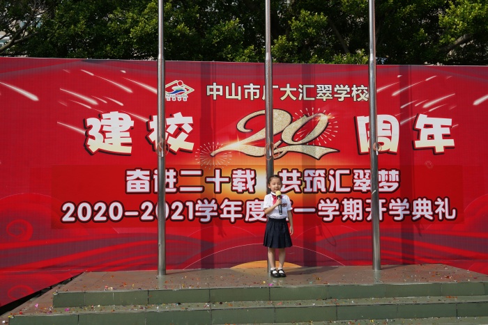 秋風(fēng)送爽九月到,菊花飄香開(kāi)學(xué)忙。郎朗金秋,在這象征著收獲和放飛夢(mèng)想的季節(jié)里,恰逢中山市廣大匯翠學(xué)校建校20周年,又值中山市教育和體育局校園文明建設(shè)“五大專(zhuān)項(xiàng)行動(dòng)”活動(dòng)火熱進(jìn)行中。為此,該校于2020年9月1日隆重舉行2020-2021學(xué)年第一學(xué)期開(kāi)學(xué)典禮暨二十周年校慶儀式啟動(dòng)。