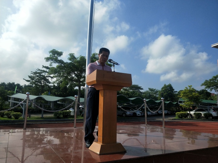 為貫徹落實(shí)《廣東省教育廳關(guān)于做好2020年秋季學(xué)期高校黨委書記、校長(zhǎng)和院(系)黨組織書記、院長(zhǎng)(系主任)及中小學(xué)黨組織書記、校長(zhǎng)上第一堂思政課工作的通知》精神,暨中華人民共和國(guó)成立71周年之際,2020年9月30日上午,中山市坦洲中學(xué)校黨總支書記、校長(zhǎng)吳劍文在學(xué)校操場(chǎng)為全校2500多名師生講授了新學(xué)期第一堂思想政治理論課。