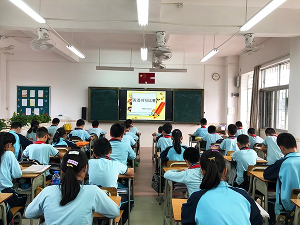 在比賽的過程中,同學(xué)們都拿出自己最好的狀態(tài),他們熱情高漲,神情專注,書寫工整規(guī)范。就連平時把英語寫得龍飛鳳舞的同學(xué)都一臉嚴(yán)肅,一筆一劃認(rèn)真地書寫,生怕一不小心就達不到自己想要的效果。很快,一個個漂亮的單詞、句子,一張張書寫工整的比賽作品就呈現(xiàn)在眼前了。比賽結(jié)束后,由英語老師對參賽作品進行評獎,以班級為單位評選出一、二、三等獎進行表彰并展出優(yōu)秀作品?! ?/p>