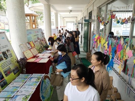 在清風(fēng)徐徐的早上,評(píng)委們迎著朝陽,來到了林東小學(xué)。他們考察的第一站是三(4)班教室。班主任莊麗珍老師和同學(xué)們一起向評(píng)委們介紹了“花樣扇子班”的創(chuàng)建歷程和建設(shè)成果。三(4)班教室的里里外外都熏陶著優(yōu)雅的扇子繪畫的藝術(shù)氣息,孩子們?cè)谡诰劬珪?huì)神地作畫。蘭花、梅花、竹子、山水、土石...... 扇子上各種各樣的圖案,色彩艷麗,好看極了。走廊上,黑板上、墻壁上,琳瑯滿目的各種扇子繪畫展現(xiàn)眼前,中國傳統(tǒng)文化繪畫藝術(shù)氣息彌漫著整個(gè)教室。那一股蓬勃向上的精神力量,那一股熱愛傳統(tǒng)文化藝術(shù)的情懷,讓人感動(dòng)。接下來,評(píng)委老師們來到了二(4)班教室。他們是“環(huán)保先鋒班”。學(xué)生們的環(huán)保手工創(chuàng)作,讓評(píng)委們眼前一亮。教室里每一面墻都是一個(gè)環(huán)保與藝術(shù)結(jié)合的展示平臺(tái)。學(xué)生的環(huán)保知識(shí),也讓評(píng)委老師們驚嘆,大家都會(huì)意稱贊著,不禁為這些活潑、愛學(xué)習(xí)的“環(huán)保先鋒”點(diǎn)贊。更引人注目的,就是“環(huán)保先鋒班”孩子們的環(huán)保時(shí)裝秀。隨著節(jié)奏明快的音樂,同學(xué)們展出自己設(shè)計(jì)的環(huán)保服裝。孩子們不僅秀出了舞臺(tái)的風(fēng)尚,更秀出了環(huán)保的思想。通過特色活動(dòng),讓大人和孩子們一起托起環(huán)保的責(zé)任,共創(chuàng)環(huán)保文明的美麗家園。