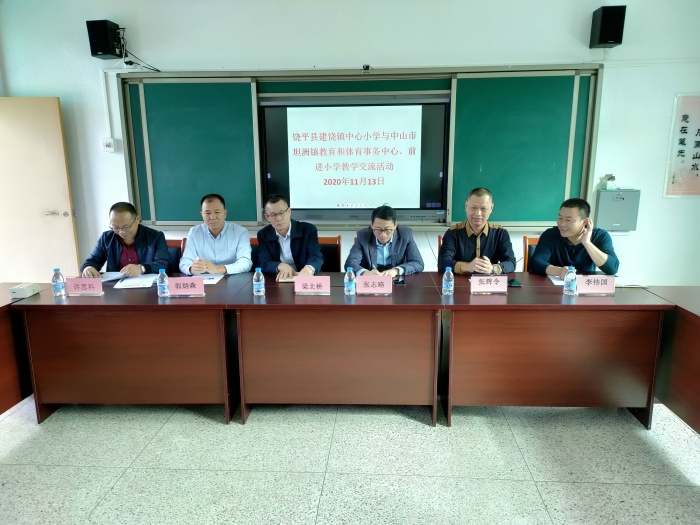 為落實《中山市教育和體育局關(guān)于2020-2021學年“三區(qū)”人才支持計劃教師專項計劃有關(guān)實施工作的通知》精神,中山市坦洲鎮(zhèn)前進小學副校長許思科于今年9月,到潮州市饒平縣建饒鎮(zhèn)中心小學進行為期一年的“三區(qū)”支教工作。為了進一步夯實支教各項工作,加強兩地教育的交流與合作。11月13日,中山市坦洲鎮(zhèn)教育和體育事務(wù)中心攜前進小學赴饒平縣建饒鎮(zhèn)中心小學開展教學交流活動。坦洲鎮(zhèn)教育和體育事務(wù)中心主任張志略、教研專干梁北橋,前進小學校長郭炳森,建饒鎮(zhèn)中心小學總部校長李偉國出席了本次活動。