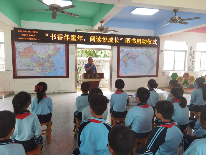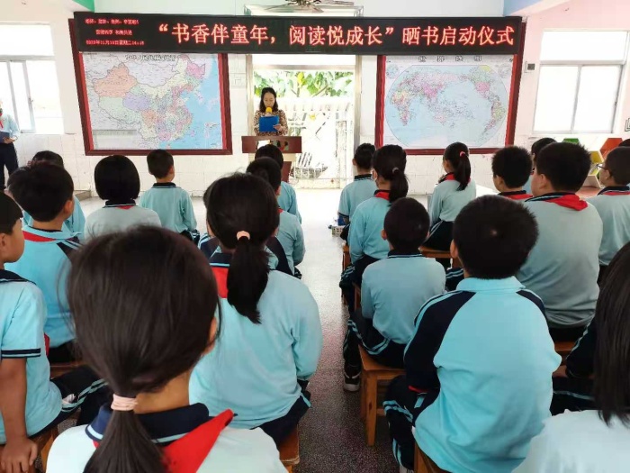 首先進行的是曬書啟動儀式。由教師代表肖穎老師發(fā)出“捐兩本,讀百本”曬書活動倡議;學(xué)生代表六(1)班的古圣堡同學(xué)向同學(xué)們介紹多讀書的益處;馬校長在致辭中提出一個希望:希望從現(xiàn)在開始,同學(xué)們能全身心地投入到讀書活動中,讓知識伴隨同學(xué)們走好人生的每一步。該校一直以來,十分注重培養(yǎng)學(xué)生的閱讀習(xí)慣,過去一學(xué)年,學(xué)校為各圖書角增添一萬多元的圖書,還增設(shè)了一個 “隊長書吧”,讓同學(xué)們在放學(xué)等候父母接送的時候,自主閱讀。