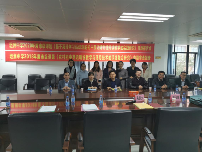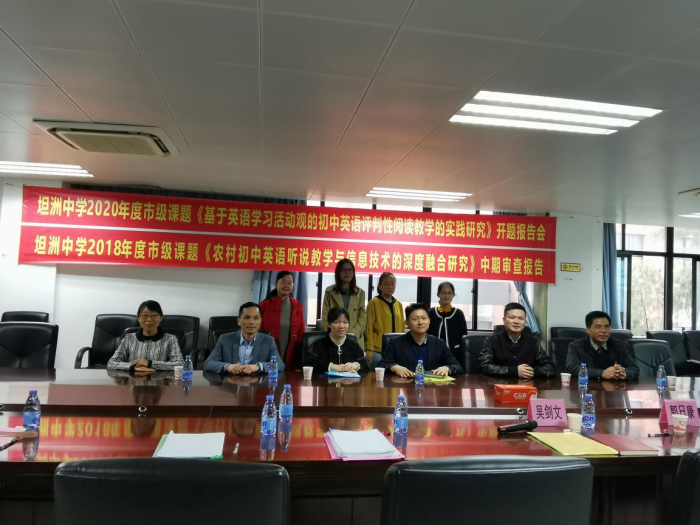 12月25日上午,坦洲中學(xué)順利召開了英語(yǔ)科2020年中山市教育科研立項(xiàng)青年課題開題暨2018年中山市立項(xiàng)青年課題中期評(píng)審會(huì)。中山市教研室張?zhí)﹦偫蠋煛⑿两±蠋?、何娟老師、坦洲?zhèn)教育事務(wù)指導(dǎo)中心梁北橋主任、中山市名教師鄧凱老師應(yīng)邀出席。坦洲中學(xué)吳劍文校長(zhǎng)、郭日康副校長(zhǎng)及英語(yǔ)科組的老師參加了會(huì)議。鄧心花主任主持會(huì)議。