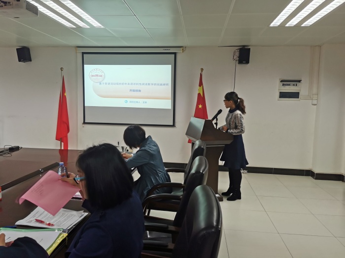 青年課題項(xiàng)目《基于英語(yǔ)學(xué)習(xí)活動(dòng)觀的初中英語(yǔ)評(píng)判性閱讀教學(xué)的實(shí)踐研究》的主持人王玫老師作開題報(bào)告。2018年立項(xiàng)的課題《農(nóng)村初中英語(yǔ)聽說(shuō)教學(xué)與信息技術(shù)的深度融合研究》的主持人曾憲貞老師作了全面的中期審查報(bào)告。張?zhí)﹦偫蠋煂?duì)兩個(gè)課題進(jìn)行科學(xué)全面地指導(dǎo)。張老師再三強(qiáng)調(diào),作研究必須嚴(yán)謹(jǐn)、科學(xué)、客觀。