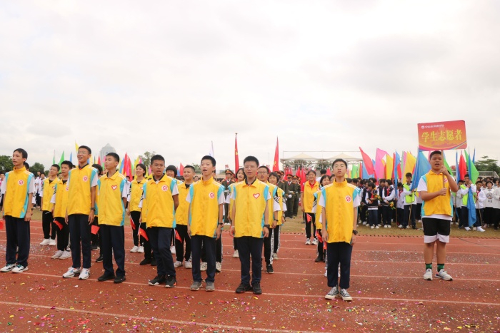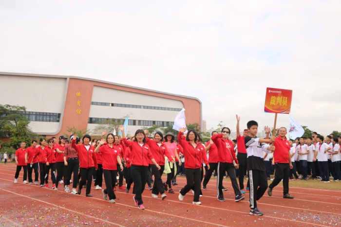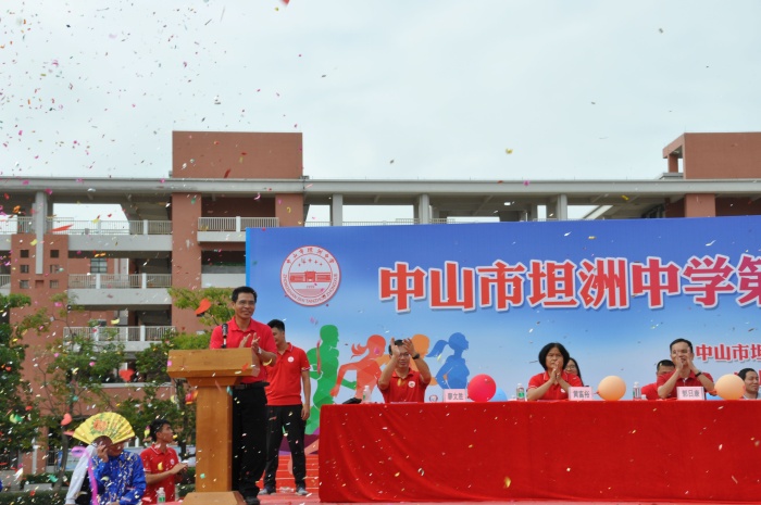坦洲中學吳劍文校長為本次運動會宣布開幕后,楊志紅副校長致運動會開幕詞,他代表學校對本屆運動會辛勤付出的教職工們表示衷心的感謝,對本屆運動會的召開表示熱烈的祝賀!李成林老師與林良博同學分別代表裁判員和運動員進行了宣誓。在精彩的開幕式文藝表演之后,第三十七屆田徑運動會正式開始。