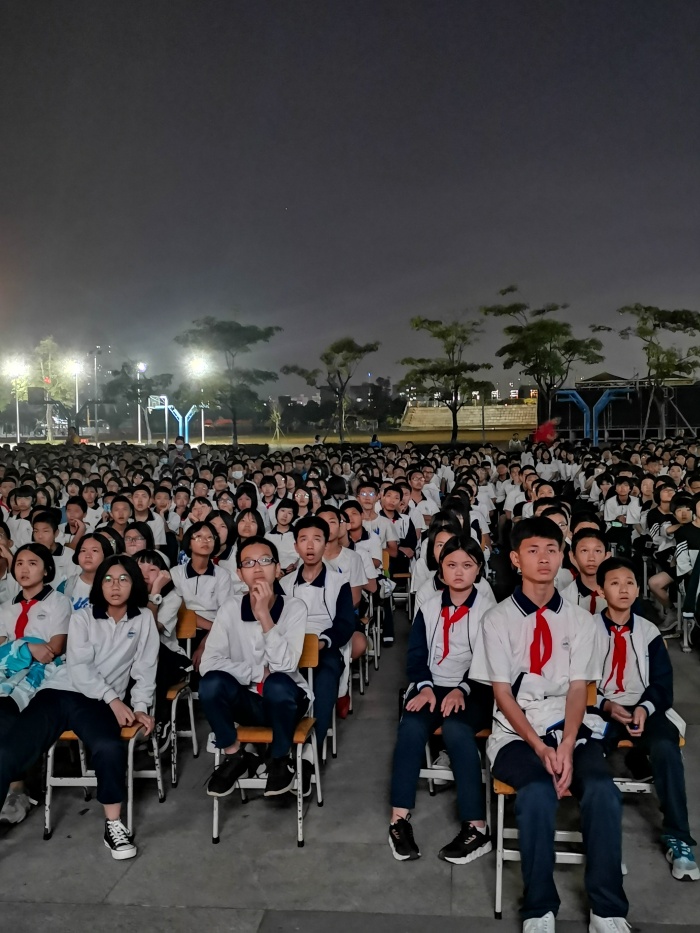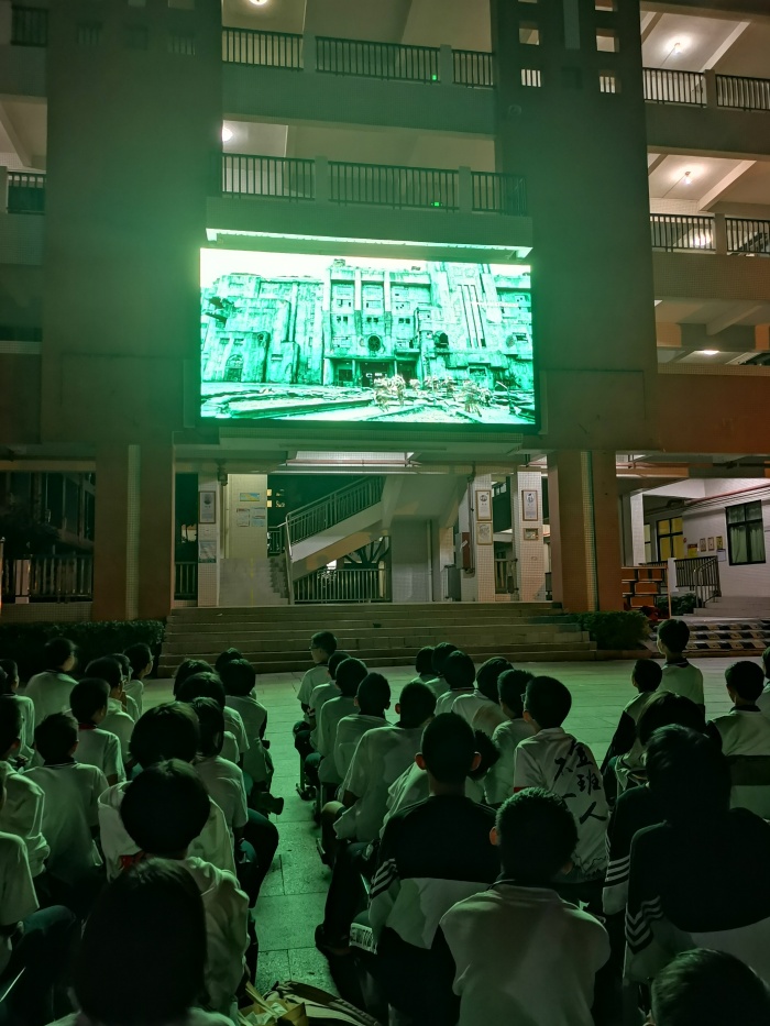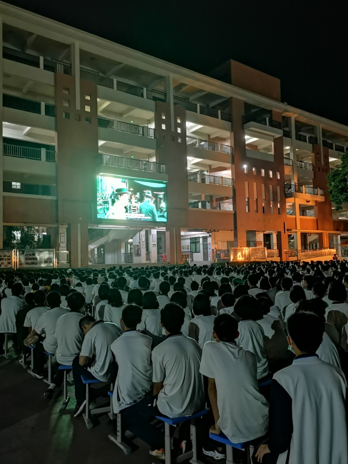 為加強愛國主義教育,激發(fā)學(xué)生愛國主義情感,豐富校園文化生活,11月19日晚上,吳劍文校長、黃金麗副校長帶領(lǐng)全校1800多名師生,觀看愛國主義電影《八佰》。