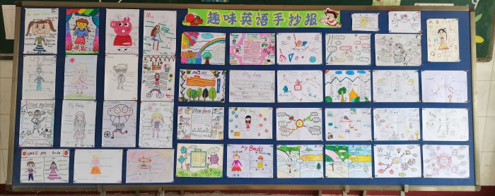 活動(dòng)前,李瑩老師進(jìn)行本次活動(dòng)的宣傳,明確活動(dòng)目的、作用和指導(dǎo)老師的職責(zé)。英語老師們對(duì)學(xué)生進(jìn)行宣傳、動(dòng)員。同時(shí)利用一節(jié)早讀課進(jìn)行手抄報(bào)的制作培訓(xùn)。活動(dòng)中, 選擇思維導(dǎo)圖形式的同學(xué)們自主選擇單元或課時(shí)的知識(shí)點(diǎn),進(jìn)行歸納、整理,根據(jù)自己的理解,找出知識(shí)點(diǎn)之間的關(guān)系,通過關(guān)鍵詞理清內(nèi)容重點(diǎn),深入挖掘知識(shí)點(diǎn)的內(nèi)涵,然后將抽象的英語知識(shí)具體化、形象化,設(shè)計(jì)單元思維導(dǎo)圖或課時(shí)思維導(dǎo)圖,“畫”出個(gè)人的英語思維和設(shè)計(jì)思路。而選擇創(chuàng)意圖配文的同學(xué)自主選擇主題內(nèi)容,采用圖配詞或圖配文的形式,將英語與精美的圖畫有機(jī)結(jié)合起來,建構(gòu)聯(lián)結(jié),深化知識(shí)記憶。本次展示活動(dòng)深受學(xué)生喜愛,獲得廣泛參與,展示的作品形式新穎、內(nèi)容豐富。有的學(xué)生們創(chuàng)作了有趣的圖配詞作品,他們用畫筆畫出趣味十足的卡通形象,對(duì)卡通人物的身體部位進(jìn)行配文,幫助記憶;有的學(xué)生創(chuàng)作了課文主題思維導(dǎo)圖,圖文并茂的同時(shí)讓知識(shí)框架、重點(diǎn)內(nèi)容一目了然;還有的學(xué)生創(chuàng)作了精美的圖配文,一篇短短的主題作文配上賞心悅目的圖畫,可見學(xué)生的語言運(yùn)用能力和審美能力。學(xué)校英語組所有教師一直致力于思維導(dǎo)圖及圖配文形式在課堂教學(xué)中的應(yīng)用。他們不斷探索思維導(dǎo)圖在復(fù)習(xí)導(dǎo)入、單詞學(xué)習(xí)、課堂內(nèi)容復(fù)習(xí)等教學(xué)環(huán)節(jié)的運(yùn)用,努力提高學(xué)生英語學(xué)科核心素養(yǎng)。本次展示活動(dòng)正是學(xué)校思維導(dǎo)圖教學(xué)成果的一次集中呈現(xiàn)。本次比賽以年級(jí)為單位評(píng)出,一等獎(jiǎng)12名、二等獎(jiǎng)15名、三等獎(jiǎng)20名。