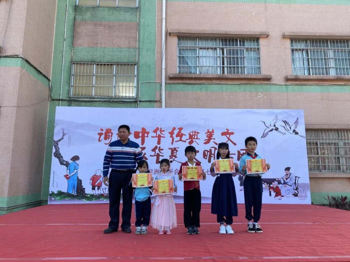 活動(dòng)最后,評(píng)委根據(jù)各參賽年級(jí)組的誦讀形式、表演特點(diǎn)及誦讀整體效果等方面進(jìn)行現(xiàn)場(chǎng)打分。評(píng)出一等獎(jiǎng)2名,二等獎(jiǎng)4名,三等獎(jiǎng)若干名。