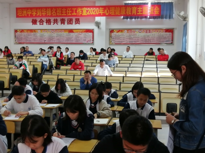 2020年12月28日吳帥老師在坦洲中學階梯2室開展“與壓力同行”校級主題班會,參加活動的有坦洲中學吳劍文校長、楊志紅副校長和劉華鋒主持人以及各年級的班主任們。