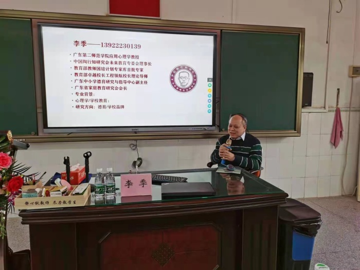 隨后,李季教授為全體教師開展講座。李教授從“德育一體化建構(gòu)的立德樹人”到“幫助學生找到最適合自己的學習方式”等一一展開。李教授謙遜平實、樸實真誠、字字珠璣,讓老師們享受了一席豐盛的精神大餐。雖然乍暖還寒,春寒料峭,老師們卻感受到春意盎然、熱情澎湃,并深深地被李教授和藹可親的人格魅力和專業(yè)學識所吸引著。