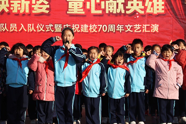 新隊(duì)員們將以入隊(duì)儀式為起點(diǎn),在今后在生活中,在星星火炬隊(duì)旗的指引下,高唱嘹亮的隊(duì)歌,用實(shí)際行動(dòng),為紅領(lǐng)巾增光添彩。