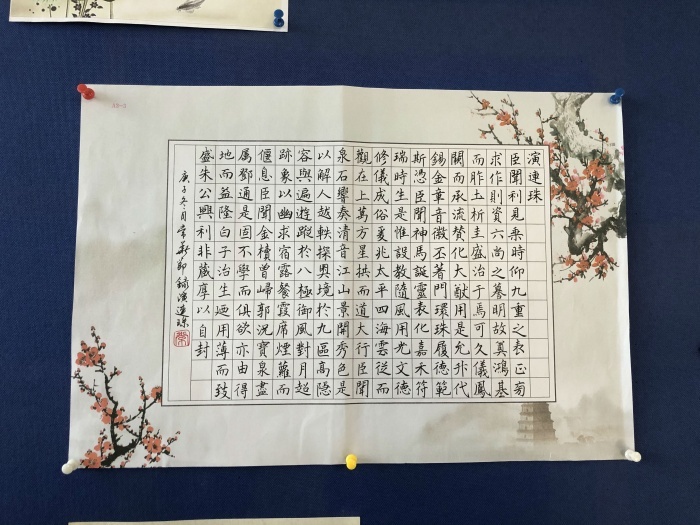 在本次書畫展的布置工作中,由于書畫展場地不大,給美術(shù)老師帶來了較大的難度,但經(jīng)過綜合科組的通力合作,在李華湘主任和朱文娟老師的指導下,將學生的作品通過高低錯落,層次分明的布置,呈現(xiàn)了立體與平面的和諧分布。