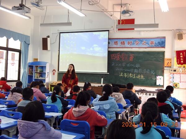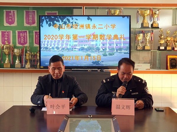 2021年1月15日上午,坦洲鎮(zhèn)永二小學(xué)舉行了期末散學(xué)禮暨法制安全教育講座活動(dòng)。校長(zhǎng)葉會(huì)平,法制副校長(zhǎng)溫文輝出席了這次活動(dòng)。