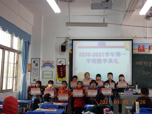 最后,學(xué)校給在這個(gè)學(xué)期學(xué)習(xí)表現(xiàn)優(yōu)秀及在期末測(cè)試中取得成績(jī)的同學(xué)們頒發(fā)獎(jiǎng)狀。當(dāng)各班同學(xué)在班級(jí)聽(tīng)取班主任及科任老師布置的寒假作業(yè)及注意事項(xiàng)后,帶著滿(mǎn)滿(mǎn)的收獲,開(kāi)開(kāi)心心地進(jìn)入愉快的寒假了。